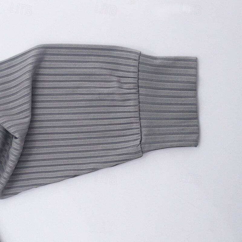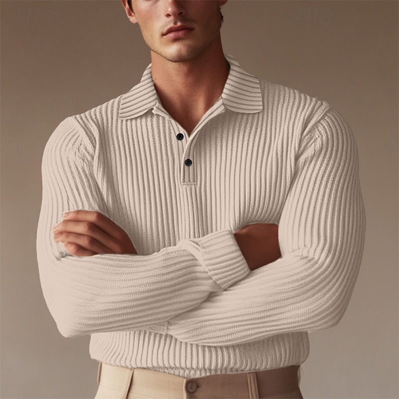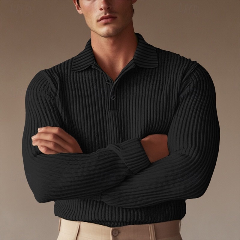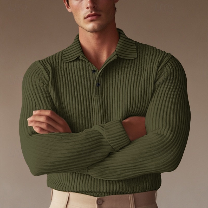 Highlights [Fabric]: Crafted from a ribbed knit fabric, this men's polo shirt offers a blend of comfort and warmth, ideal for the transitional seasons of spring and fall. The knit design ensures durability and flexibility, making it perfect for everyday wear. [Fit]: Designed to provide a comfortable and flattering fit, this polo shirt maintains a classic silhouette that complements various body types. The ribbed texture adds a subtle touch of style, enhancing the overall look of the shirt. [Design Highlights]: Featuring a traditional ribbed polo collar and three-button placket, this shirt allows for adjustable style and ventilation. The long sleeves contribute to its versatile, season-appropriate design, suitable for layering or wearing on its own. [Occasions]: This polo shirt is suitable for a range of occasions, from formal and work settings to casual outings and holiday activities. Its solid color pattern and understated elegance make it a versatile choice for any wardrobe, ideal for a golf outing or a professional event. [Sizes]: Available in a range of sizes including M, L, XL, and 2XL, this polo shirt caters to diverse sizing needs, ensuring a comfortable fit for everyone.