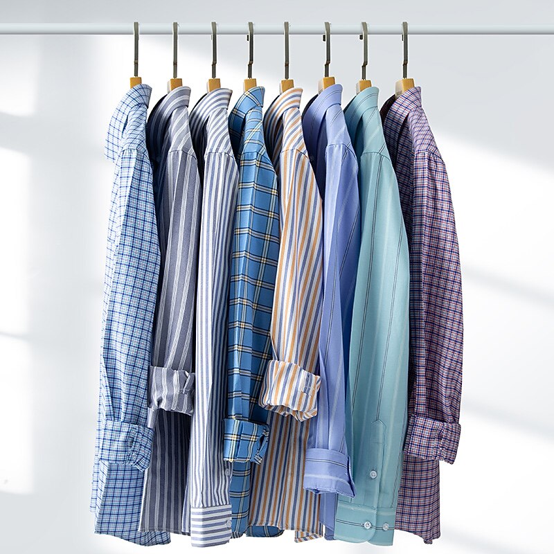 Men's Dress Shirt Striped Shirt Non Iron Shirt Oxford Shirt Stripe Wedding Vacation grey blue Yellow Light Green Blue Long Sleeve Turndown All Seasons Clothing Apparel Button-Down 17