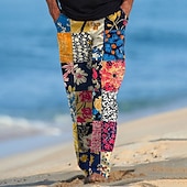 More information about Men's Floral Color Block Patchwork Trousers Casual Pants Drawstring Elastic Waist Hawaiian Ethnic Casual Outdoor Vacation Holiday Side Pockets Straight Leg Trousers Summer Spring Fall 3D Print Black