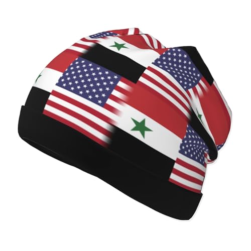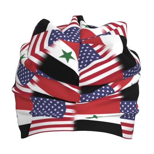 American Flag and Syrian Flag Kids Leisure Elastic Knitted Hat Junior Large Size Knit Cap Child Beanie Black 1