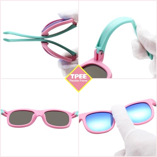 • Safe & Non-Toxic - Our toddler sunglasses are 100% BPA-free and made with TPE material that is safe for your baby's delicate skin.