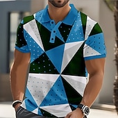 Men's Geometric Pattern Abstract Polo Short Sleeve Polo Shirts Collared Shirts Casual Street Athleisure Daily Wear Buttons Summer Red Blue Green 7