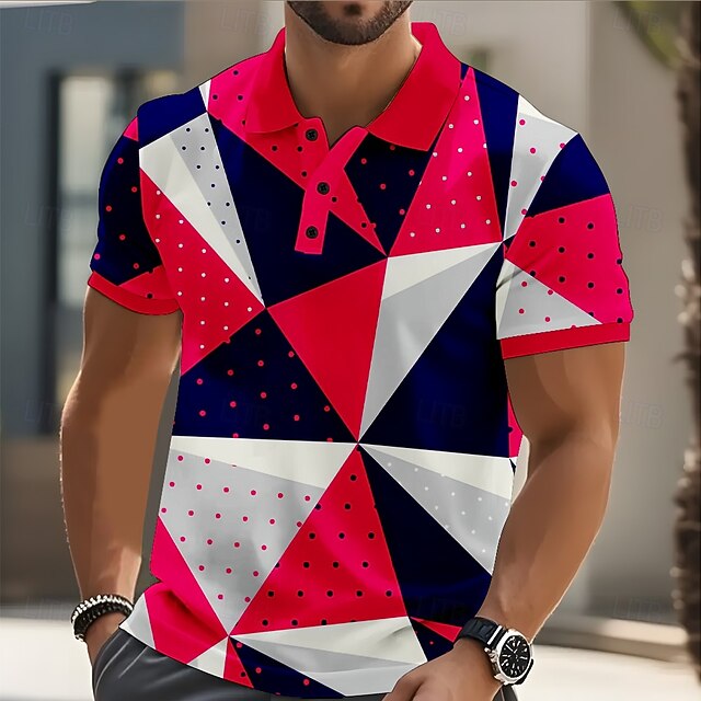 More information about Men's Geometric Pattern Abstract Polo Short Sleeve Polo Shirts Collared Shirts Casual Street Athleisure Daily Wear Buttons Summer Red Blue Green