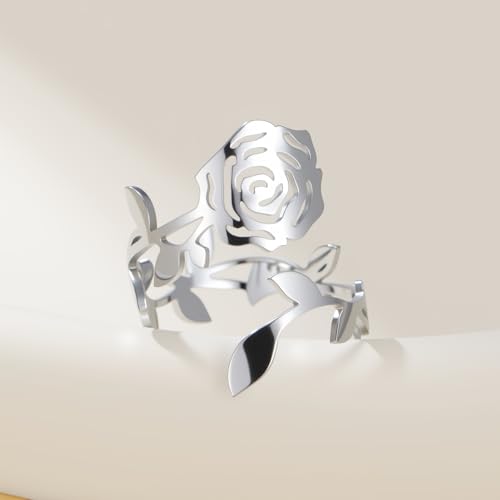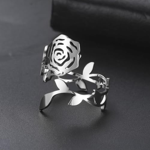 kkjoy Rose Ring Stainless Steel Adjustable Stacking Rose Flower Love Promise Ring for Women Charming Ladies 5