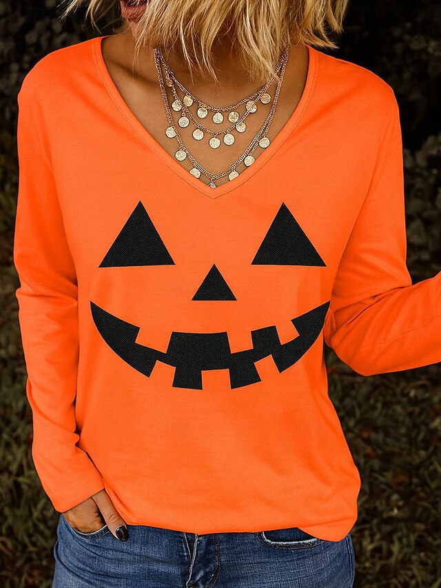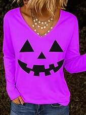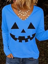 More information about Halloween Women's T shirt Pumpkin V Neck Long Sleeve Tunic Graphic Elegant Vintage Stylish Regular Tops Daily Going out Weekend Print Blue Purple Orange Green Spring Fall
