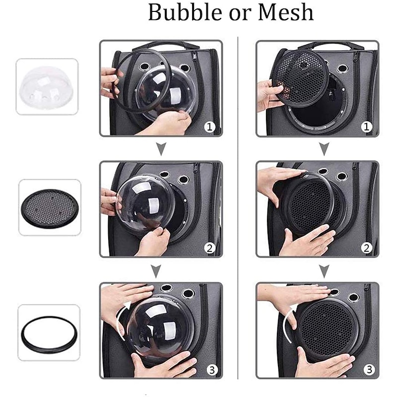 Highlights 【Large Space】: This dog backpack carrier is 13"L x 8"W x 15"H, Carrier fits cat up to 13 pounds and perfect for 10 pounds cat.Most airline approved under the seat. Check your airline requirements before traveling. Easily fits most small, medium-sized dogs and cats. 【Superior Quality & Easy to Clean】: This dog backpack is made of high-quality scratch & water-resistant soft PU leather, durable to withstand scratching, waterproof. Clean it with a rag and a light wipe, so easy. 【Cat Bubble Backpack Transparent Design】: The Unique transparent space capsule design makes this chest bag cool and futuristic. Bubble window can provide security and ease anxiety for your lovely Cats. Convenient to enjoy the sunshine and scenery with your furry friend for hiking, travel, outdoor activities. 【 Breathable and Ventilation】: Extra 12 big holes and mesh around this dog backpack carrier to perform great air circulation and ventilation inside, let your pet breathe freely and relax.Side pocket is added for water bottle and other stuffs storage. 【Comfortable And Safety】: The back and shoulder straps are equipped with extra thick padding for more comfort during long trips. This backpack comes with chest buckles to give you extra support.This dog carrier backpack comes with a safety strap to secure your dogs and prevent escape.