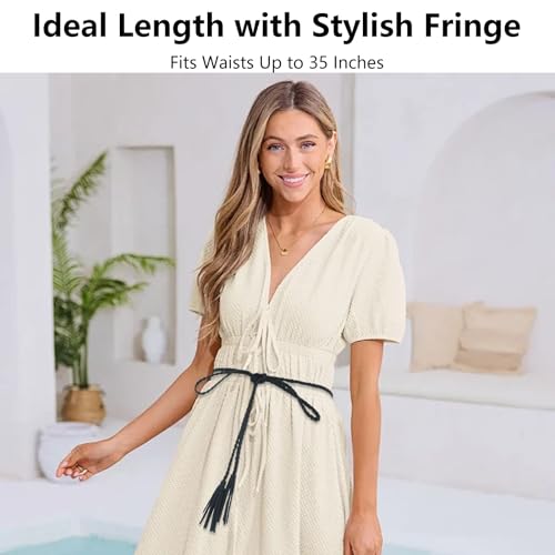 • Fashionable Tassel Accent: The tassel ends add movement and visual interest to your outfit. As a standout tassel belt for women, it highlights your figure while injecting a trendy boho vibe to your wardrobe