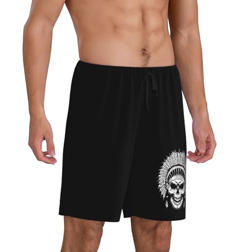Native American Skull Pajama Shorts for Men, Men's Pajama Bottoms, Sleepwear for Summer 1