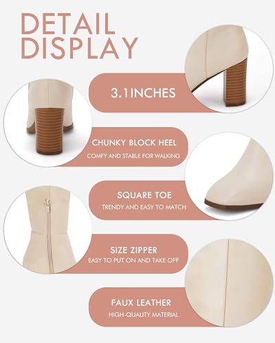 • 👣【Features】Square toe, stacked chunky block heels, knee high boots, side zipper, thigh high fashion boot, wide calf.Sleek and simple, these classic booties are very versatile and very everyday!There are two different materials to choose from, faux leather or faux suede!