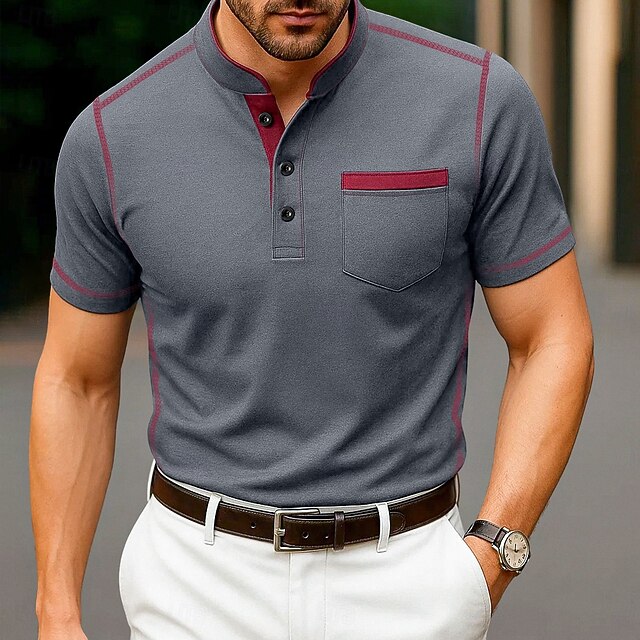 More information about Men's Henley Shirt Tee Henley Top Short Sleeve Solid Color Plain Solid Fashion Designer Casual Color Block Buttons Plain Henley Outdoor Casual Daily Summer All Seasons Black White Navy Blue Henley