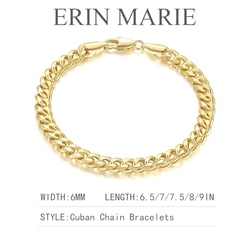 ERIN MARIE 14K Gold Bracelets for Women & Men Gold Bracelet for Women Classic Dense Cuban Link Bracelets for Men Women’s Dainty Cuban Chain Jewelry Gifts 6.5'' 7'' 7.5'' 8'' 9'' 4