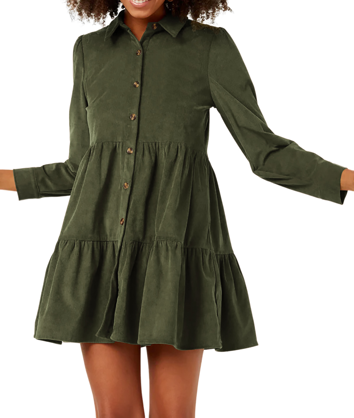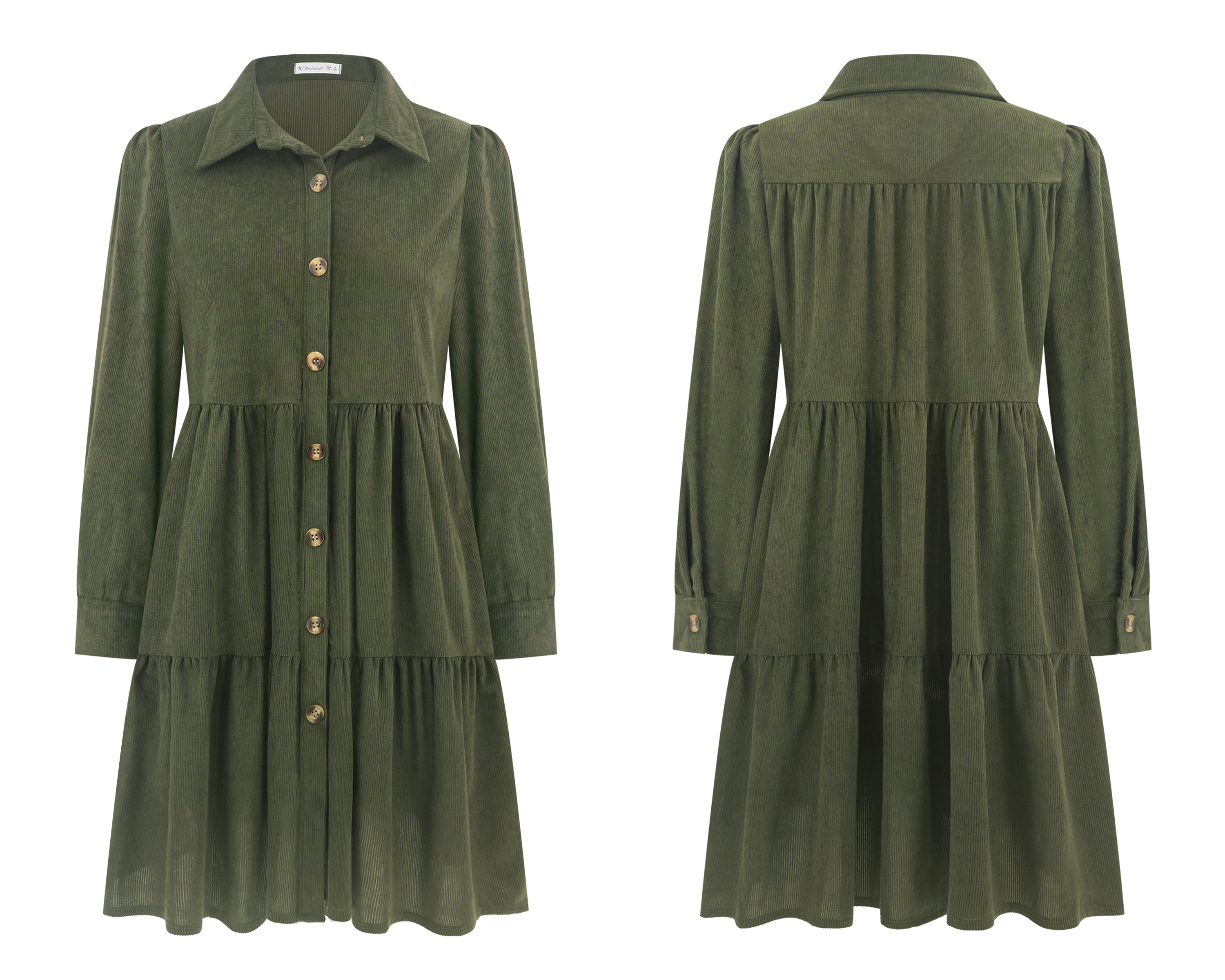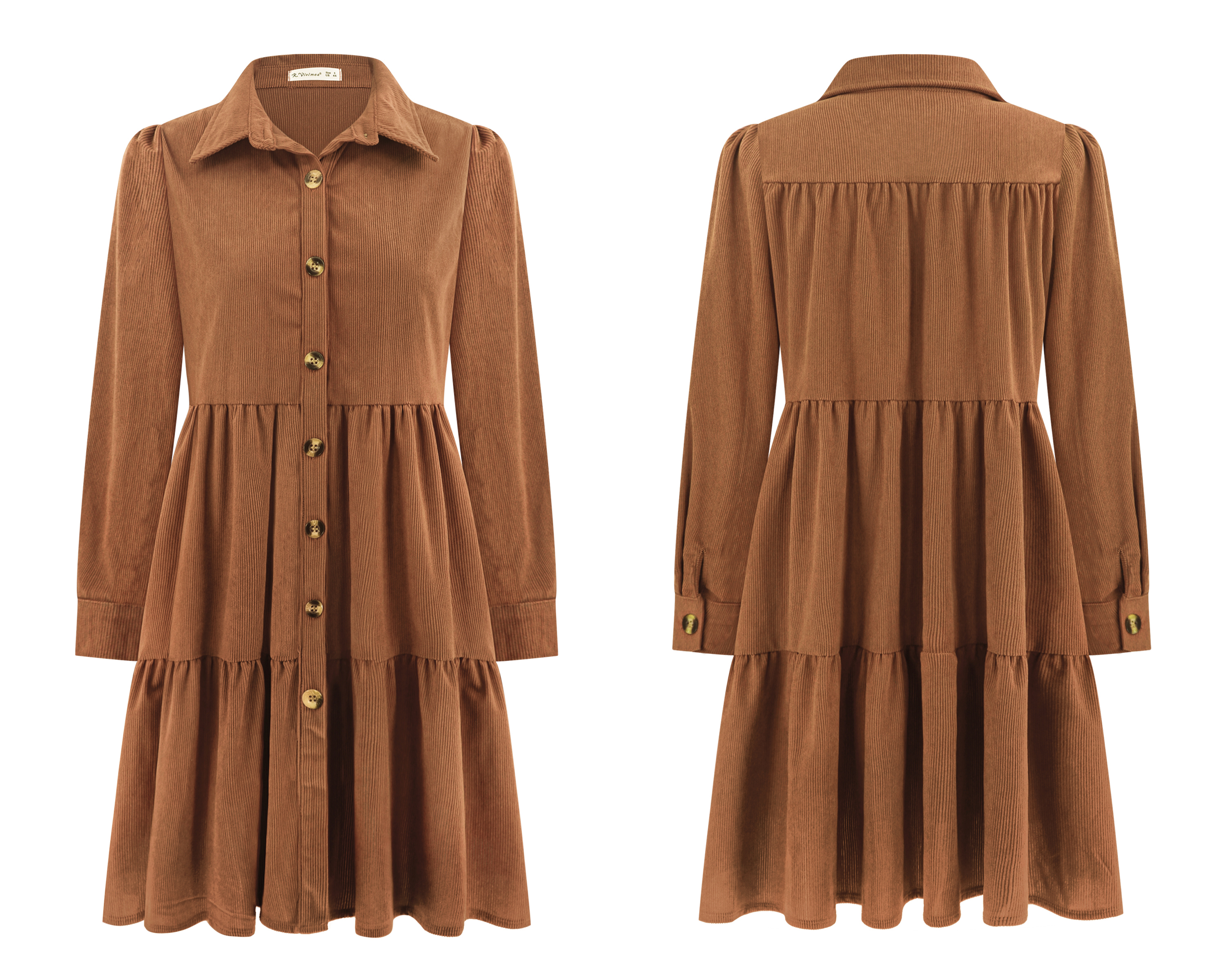 More information about R.Vivimos Womens Fall Corduroy Dress 2024 Long Sleeve Button Down Tunic Mini Babydoll Dress with Pockets