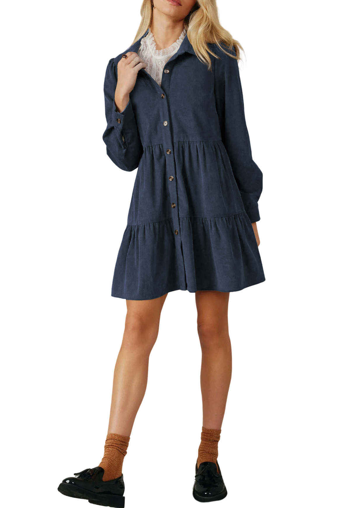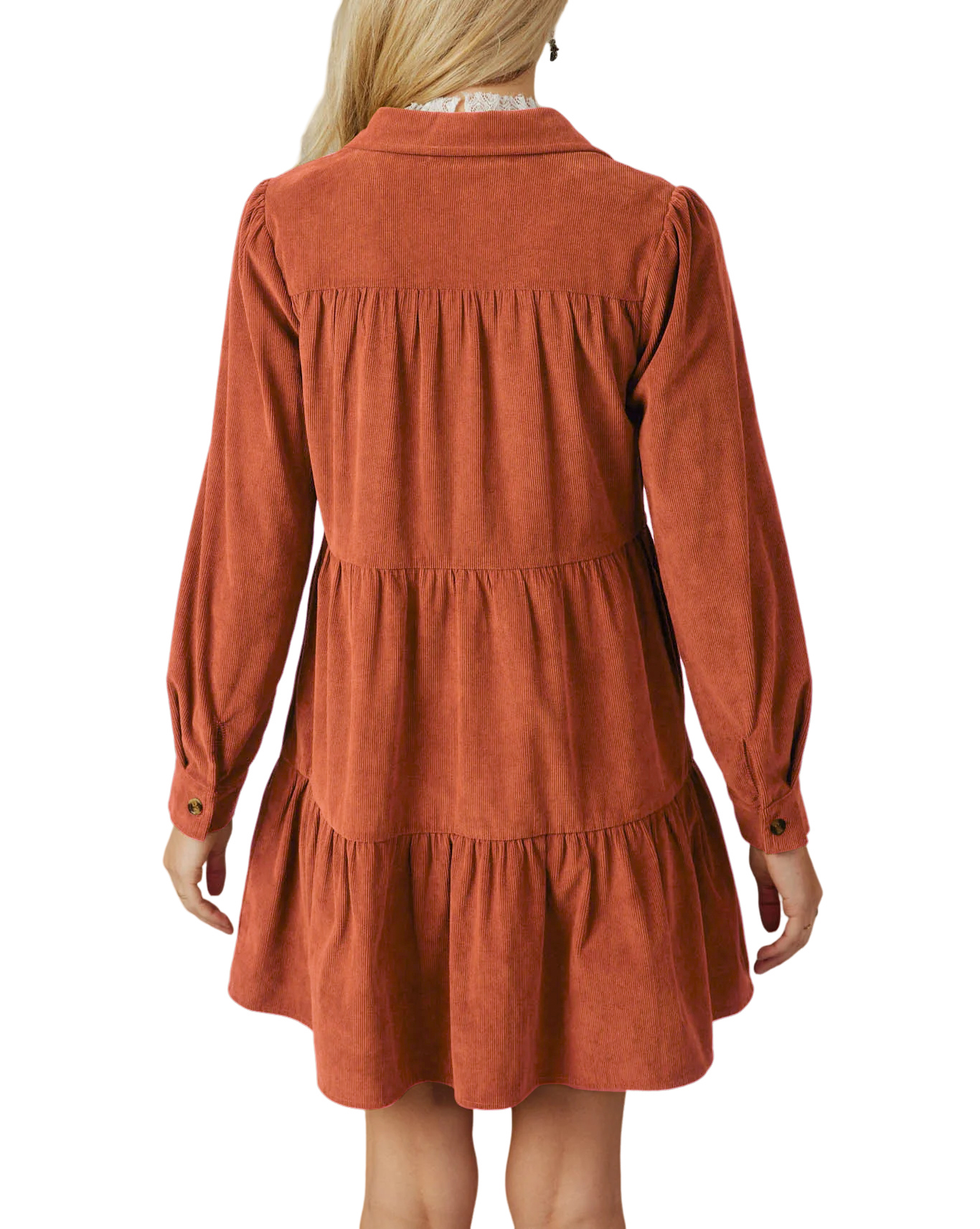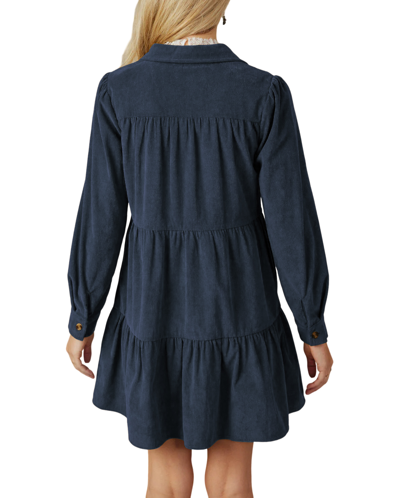 R.Vivimos Womens Fall Corduroy Dress 2024 Long Sleeve Button Down Tunic Mini Babydoll Dress with Pockets 11