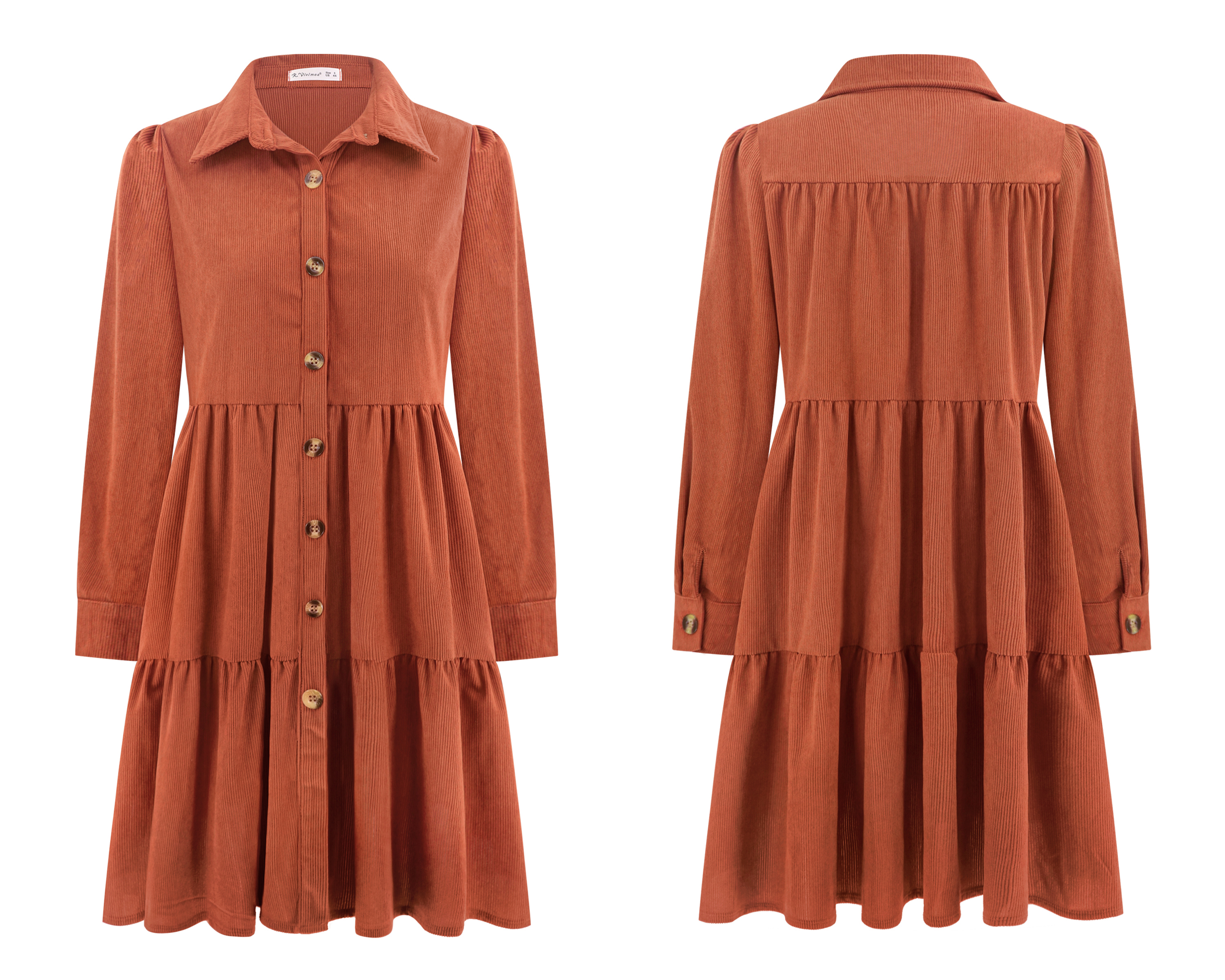 R.Vivimos Womens Fall Corduroy Dress 2024 Long Sleeve Button Down Tunic Mini Babydoll Dress with Pockets 27