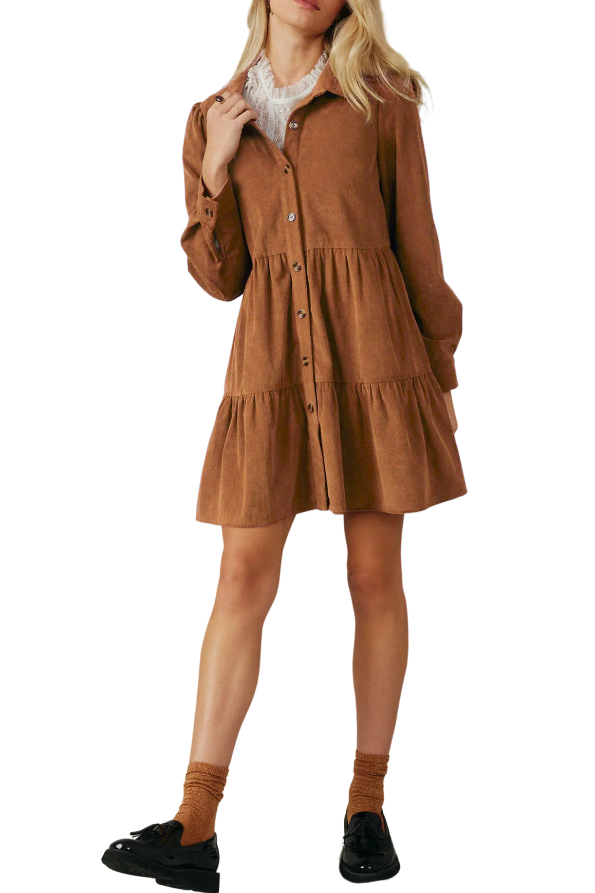 R.Vivimos Womens Fall Corduroy Dress 2024 Long Sleeve Button Down Tunic Mini Babydoll Dress with Pockets 20