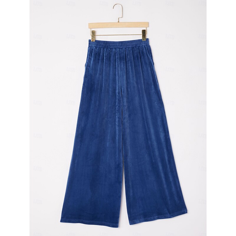 $82.99 - Women's Wide Leg Trousers Casual High Stretch Corduroy Ribbed Texture Elastic Waistband Blue Elastane 2025. Shop for cheap Pants online? Buy at lightinthebox.com on sale today!