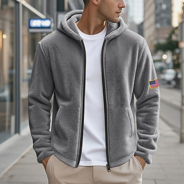 More information about Men's Hoodie Full Zip Hoodie Polar Fleece Fleece Jacket Fleece Hoodie Black Navy Blue Khaki Gray Hooded National Flag Pocket Sports & Outdoor Daily Holiday Polyester Streetwear Basic Casual Fall
