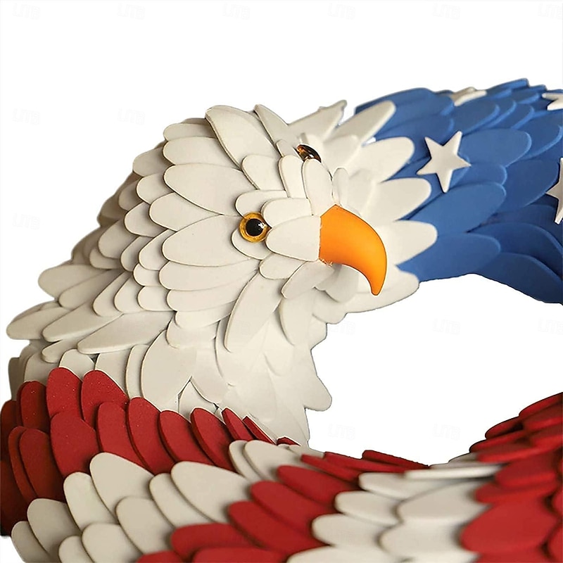 HOT ! Patriotic Wreath American Flag Bald Eagle Wreath, Independence Day 4th July Memorial Day Wreath for Front Door, Farmhouse Wreath Artificial Wreaths for Front Door Summer Holiday Decor 15"