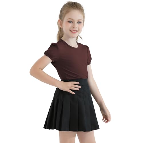 QBK Girls Cotton T Shirts 2T-12Years, Puff Sleeve Crew Neck Tops for Toddlers & Kids 5