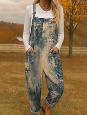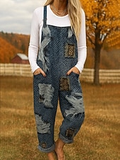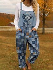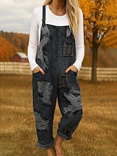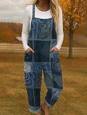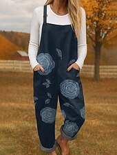 More information about 100% Cotton Women's Overall Lightweight Floral Sleeveless Sleeveless Straight Square Neck with Pocket Vacation Daily Loose Fit Navy Blue Blue Khaki Summer