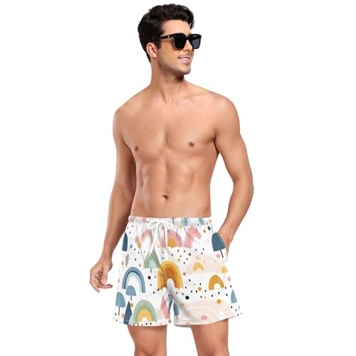 xigua Cute Cartoon Rainbows Mens Swim Trunks with Liner, 5 inch Quick Dry Mens Boardshorts for Beach 5