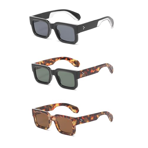 • High quality materials: Chunky rectangular sun glasses are made of high-quality plastic frames, metal spring hinges, and exquisite temples, which are shatter-resistant