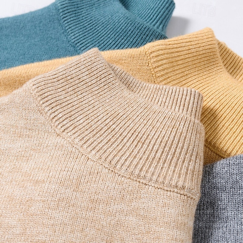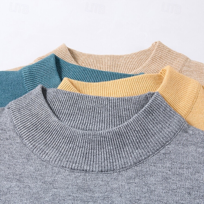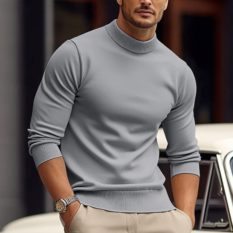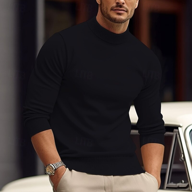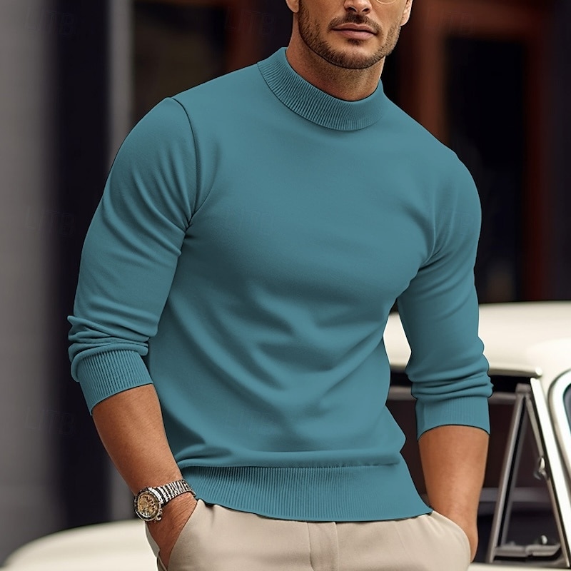 Highlights Key Selling Points: - Long sleeve for added coverage and warmth - Designed for men - Basic and casual style for everyday wear - Perfect for vacation outings - Mock neck adds a trendy touch - Ribbed knit style adds texture and detail
