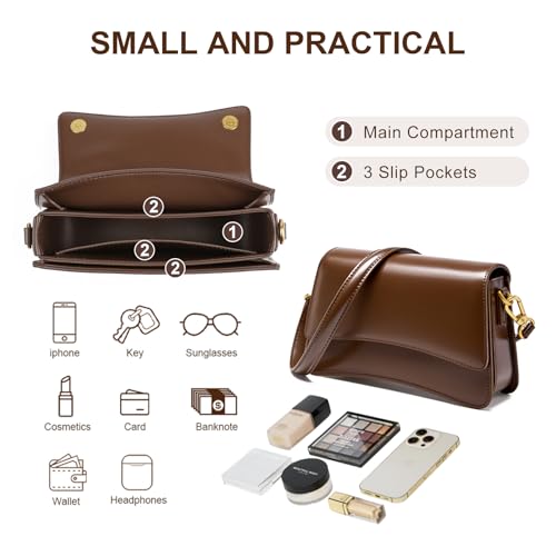 Crossbody Bag for Women, Genuine Leather Adjustable Shoulder Purse, Lightweight Saddle Bag 6