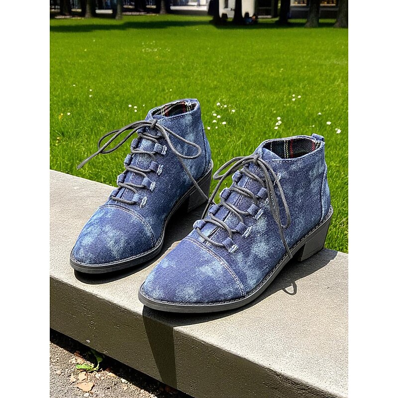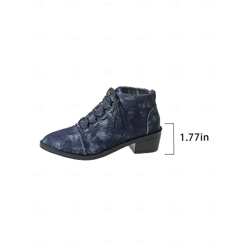 HOT ! Women's Blue Denim Lace-Up Ankle Boots – Casual Booties with Chunky Heel for Park Strolls, Weekend Outings and Daily Wear