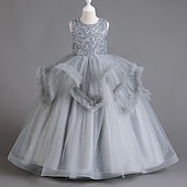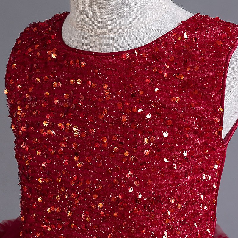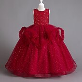 More information about Kids Girls' Party Dress Solid Color Sequin Sleeveless Wedding Special Occasion Mesh Zipper Adorable Sweet Cotton Mesh Maxi Party Dress Summer Spring Fall 4-13 Years White Pink Red