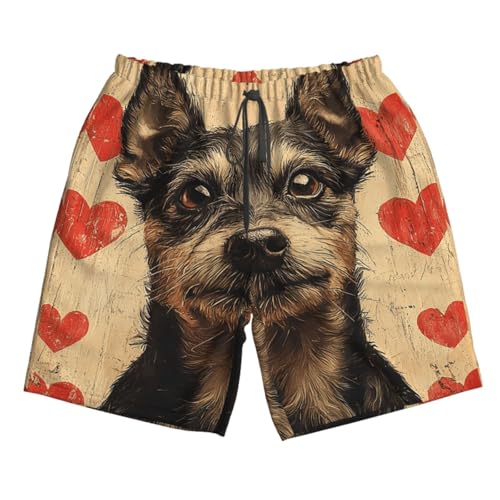 HOT ! Men Swim Trunks Beach Shorts Swimwear Summer Bathing Suits - Dog Hearts Vintage