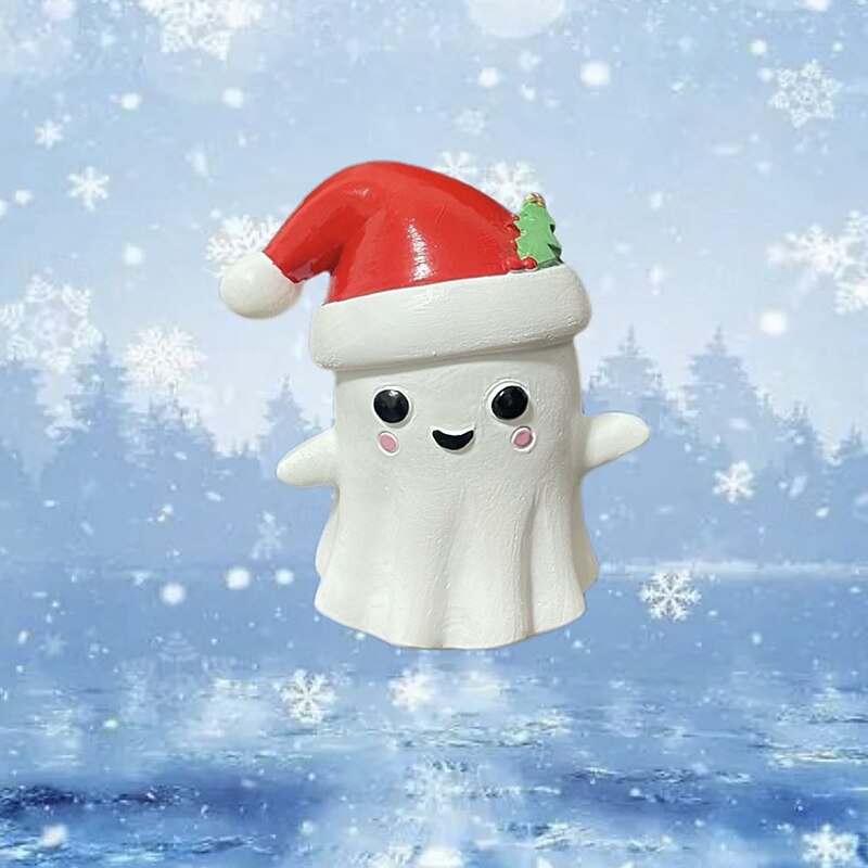 HOT ! Halloween Cute Ghost Decoration with Santa Hat Resin Figurine, Cute Mini Decoration for Halloween Christmas Decor, Holiday Gift Ornament