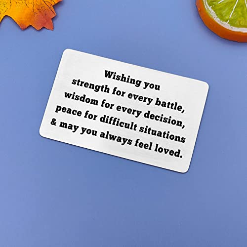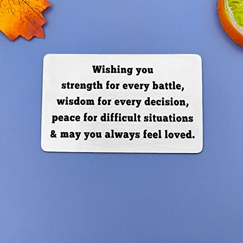 • Christian Gifts for Men: The engraved wallet card engraved with "Wishing you strength for every battle,Wisdom for every decision,peace for difficult situations & may you always feel loved” This would be a great gift of encouragement to someone that you love!