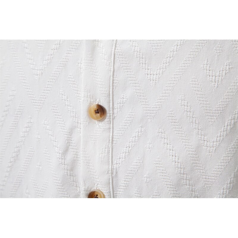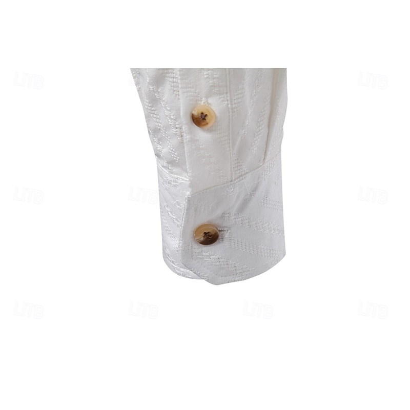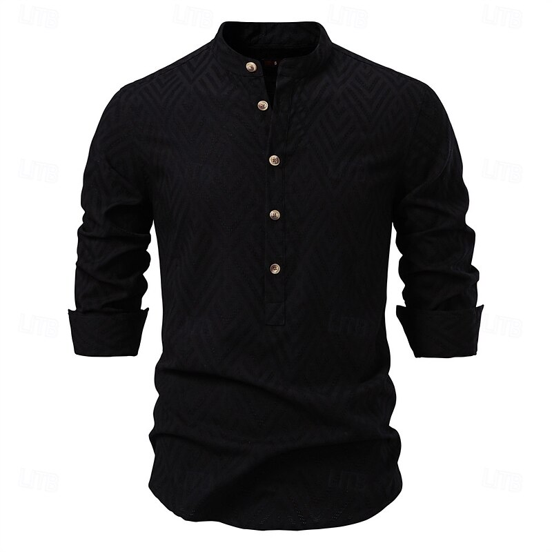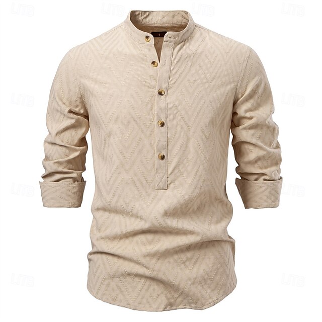 More information about Men's Shirt Popover Shirt Summer Shirt Casual Shirt Beach Shirt Button Up Shirt Black White Apricot Long Sleeve Jacquard Solid / Plain Color Band Collar Vacation Hawaiian Buckle Clothing Apparel