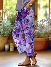 More information about Women's Chinos Vacation Vintage Ethnic Style Full Length High Waist Floral Graphic Pocket Soft Outdoor Breathable Inelastic Outdoor Vacation Street Lilac Summer Spring Fall Regular Fit