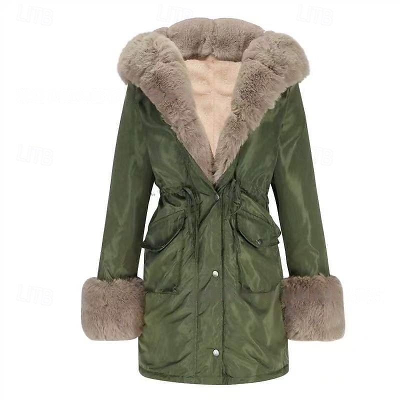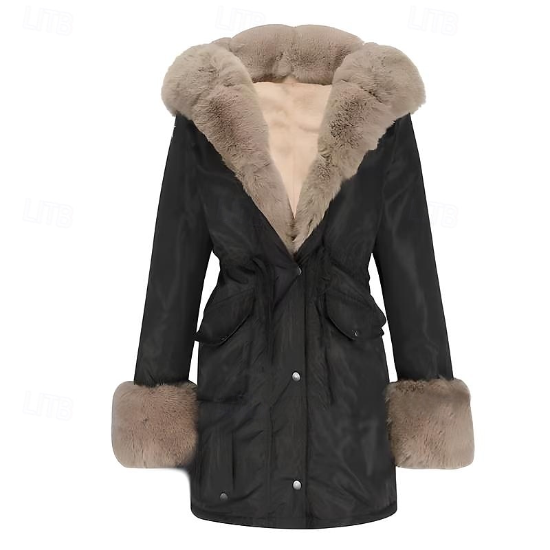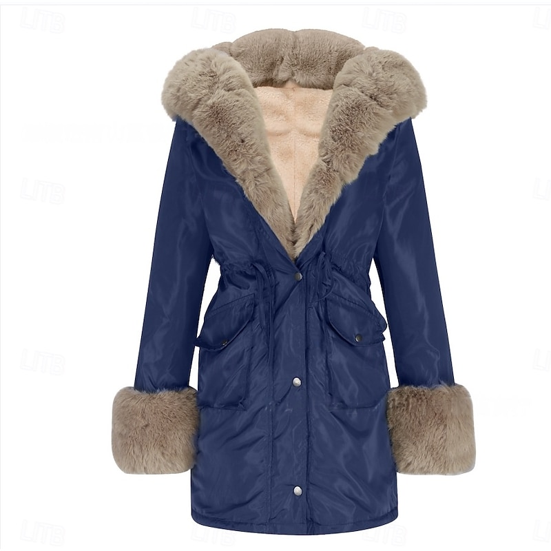More information about Women's Winter Coat Winter Jacket Parka Windproof Warm Zipper Pocket Drawstring Fur Collar Elegant Street Style Plain Street Casual Daily Wear Zipper Regular Hoodie Regular Fit Long Sleeve Outerwear