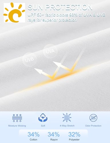 • EXCELLENT FEATURES: This plain tshirt for men is moisture-wicking, breathable, and quick-drying, with UPF 50+ sun protection. It effectively blocks UVA/UVB rays to protect your skin and prevents odor caused by sweating, keeping you dry and fresh all the time.