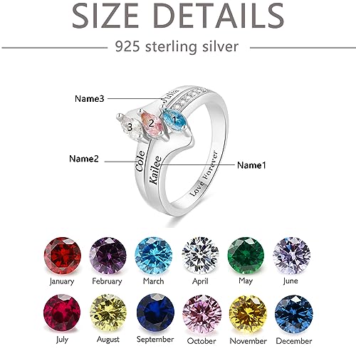 • 【Real Diamonds&Shiny Birthstone】: This personalized name birthstone ring features real natural white diamonds and beautiful birthstones, customizable with 3 names and choose 3 birthstones, the combination of diamonds adds a luxurious look to the personalised ring. A special piece of jewelry that you can have anytime or as a gift to your special someone saying I love you.