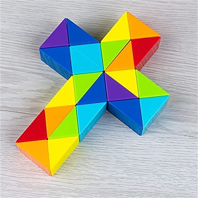 Transformable Snake Fidget Toy - smooth feel and perfect cut corners, can make it spin and deform faster, never get stuck. Each triangle square has four fixed points. When you rotate the snake toy in place, it will make a crisp sound without deformation or looseness.