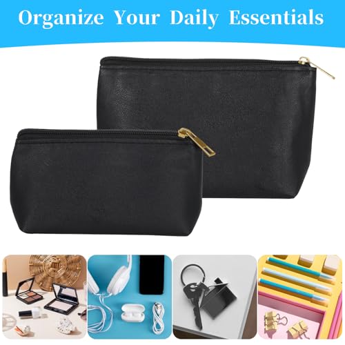 2 Pack Small Leather Makeup Bag for Purse, Portable Cosmetic Bags for Women PU Leather Travel Makeup Pouch with Zipper (Black) 2