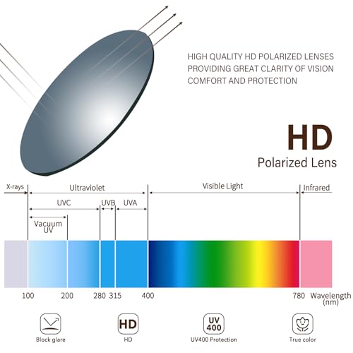 • POLARIZED UV400 LENSE -- These womens polarized Sunglasses lenses effectively reduce glare and reflection, block the sun's harmful UVA & UVB rays without decreasing clarity or giving you any headaches. High-definition lens gives you a natural & clear vision, and keeping your eyes healthy.