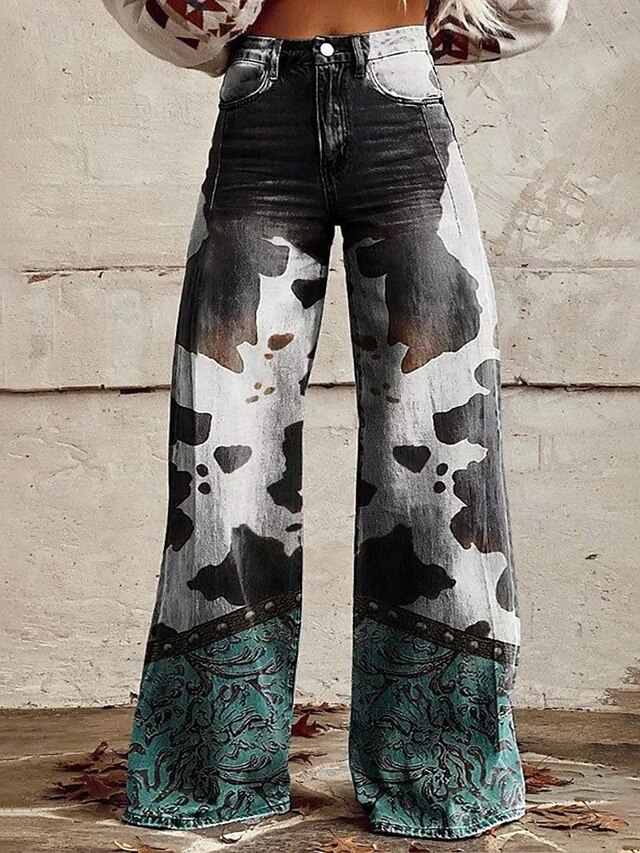 More information about Women's Wide Leg Pants Trousers Fashion Streetwear Full Length Natural Floral Pocket Print Outdoor Comfortable Going out Weekend Black Summer Regular Fit