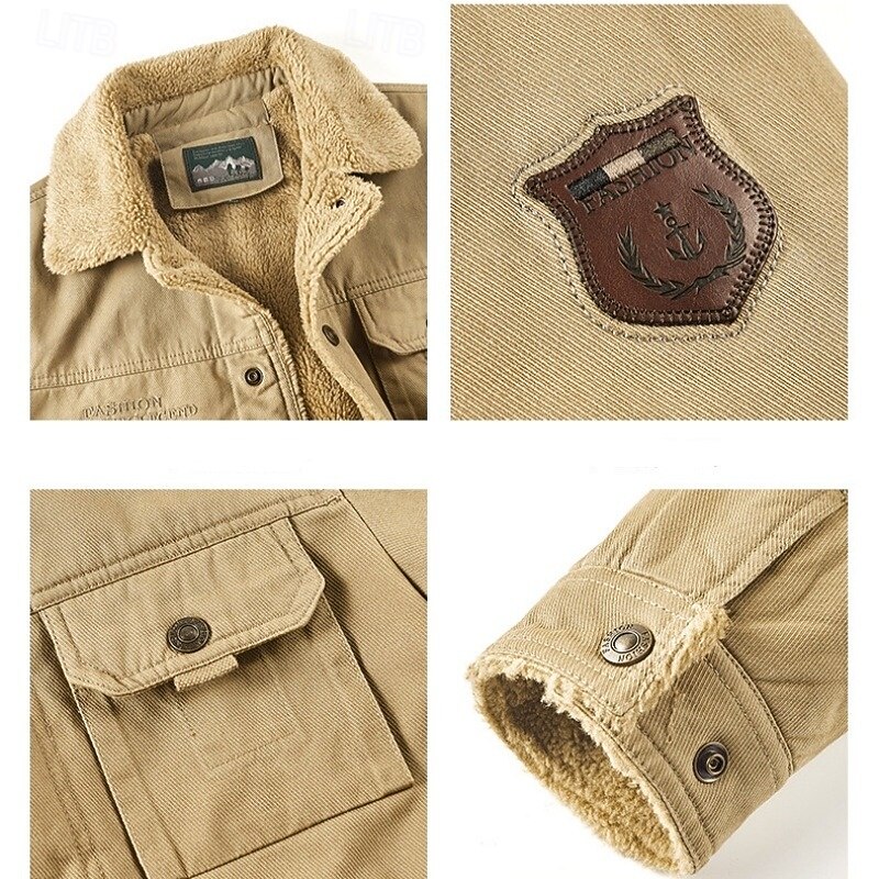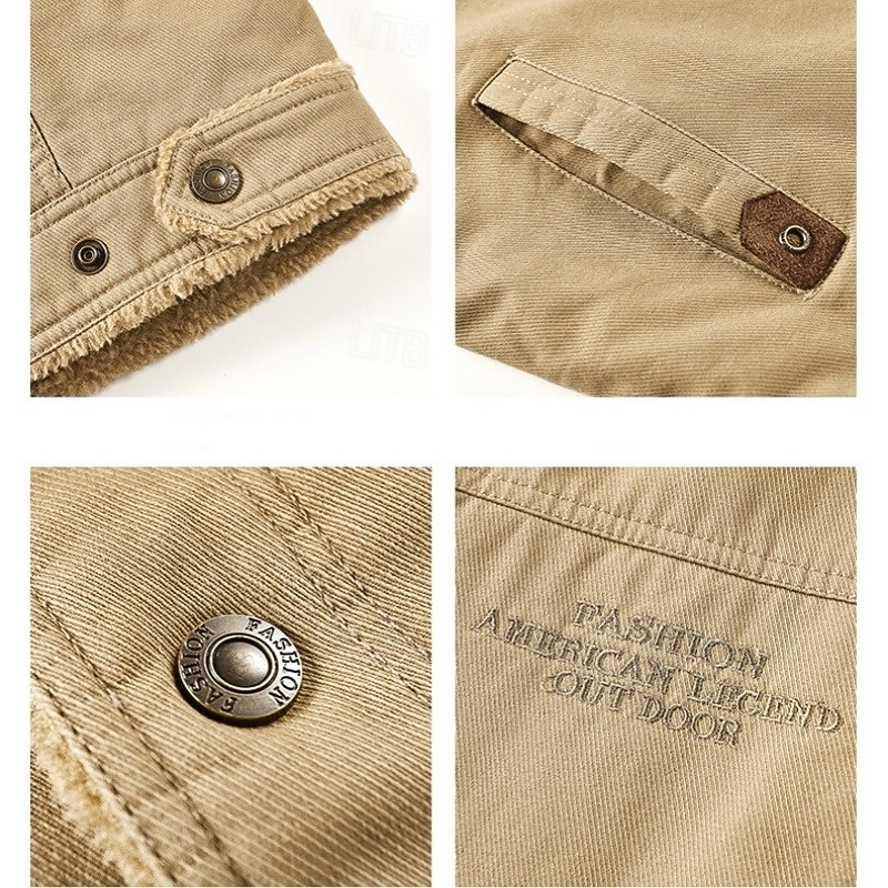 More information about Men's Fleece Jacket Cargo Jacket Chore Jacket Formal Home Windbreaker Durable Pocket Fleece Collar Fall Winter Solid Color Active Vintage Collar Regular Navy Blue Khaki Army Green Jacket