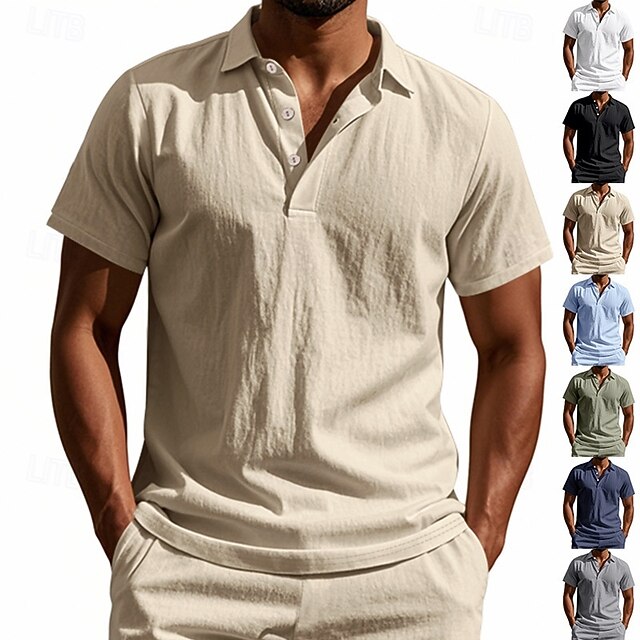 Men's Polo Golf Shirt Business Casual Classic Short Sleeve Fashion Solid Color Buttons Pocket Summer Spring Regular Fit Black White Navy Blue Green Khaki Light Blue Polo 25
