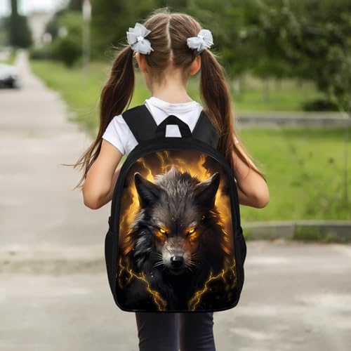 Huke Kids Wolf Backpack for Boys Girls, Cool Black Gold Lightning Backpack for School & Travel, Big Kids Child Backpacks, Elementary Middle High College Student Bookbag, Fire Wolf, 17 Inch 6