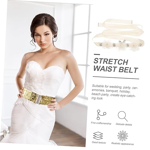 More information about Wide Gold Sequin Elastic Belt for Women Stretch Dress Waistband Decorative Sparkling Cinch Belt for Wedding Party and Dance Performances
