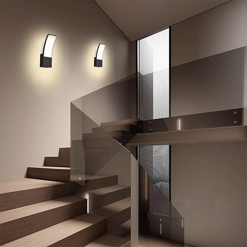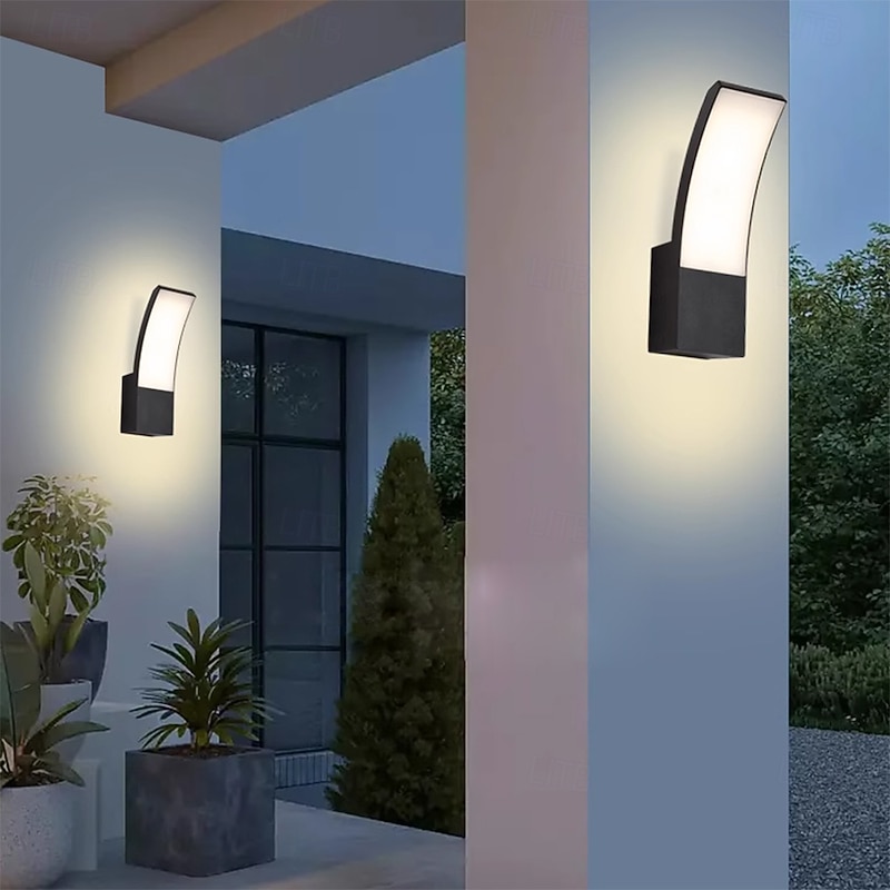 LED Outdoor Wall Light 12W Arc Modern Outdoor Wall Light Waterproof IP65 Steady on Outdoor Black Wall Light Suitable for Outdoor Porch Courtyard Garden Bathroom Bedroom 85-265V 6