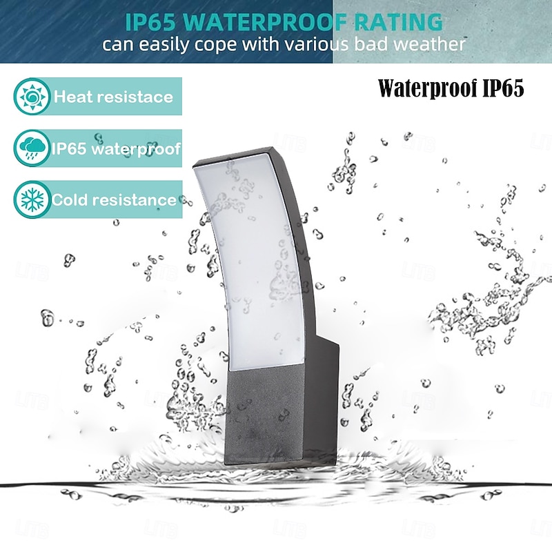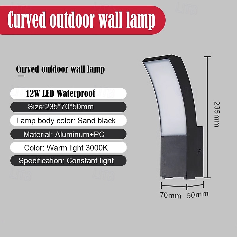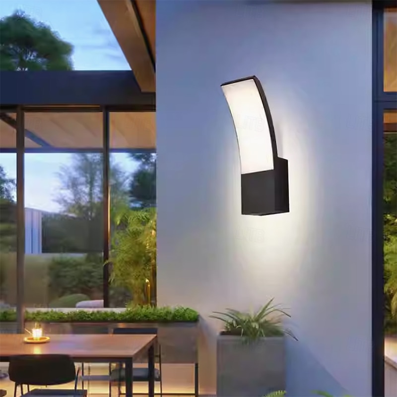 LED Outdoor Wall Light 12W Arc Modern Outdoor Wall Light Waterproof IP65 Steady on Outdoor Black Wall Light Suitable for Outdoor Porch Courtyard Garden Bathroom Bedroom 85-265V 10