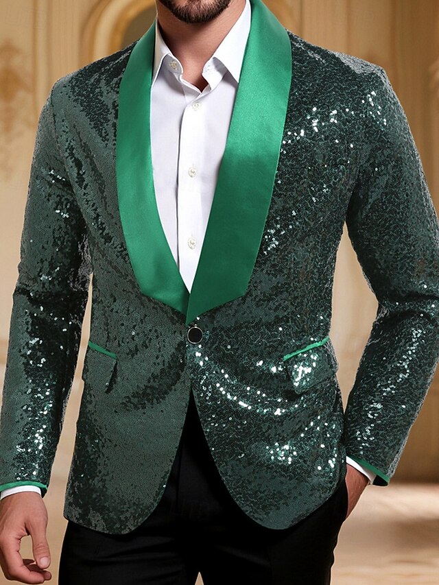 More information about Men's Blazer Business Cocktail Party Wedding Party Fashion Casual Spring Fall Polyester Plain Pocket Buttons Comfortable Single Breasted Blazer Dark Green