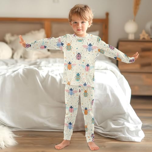Pajama Sets Long Sleeve Colorful Bugs on Background Soft Comfy Sleepwear 2 Piece PJS 3-8T 4
